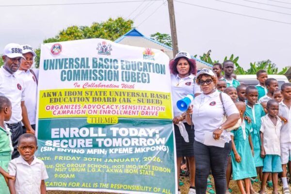 By Anietie Akpan In furtherance of efforts to strengthen basic education and reduce the number of out-of-school children, the Universal Basic Education Commission (UBEC), in collaboration with the Akwa Ibom State Universal Basic Education Board (SUBEB), has taken the ongoing advocacy and sensitization campaign on school enrollment to Nsit Ubium Local Government Area of Akwa…